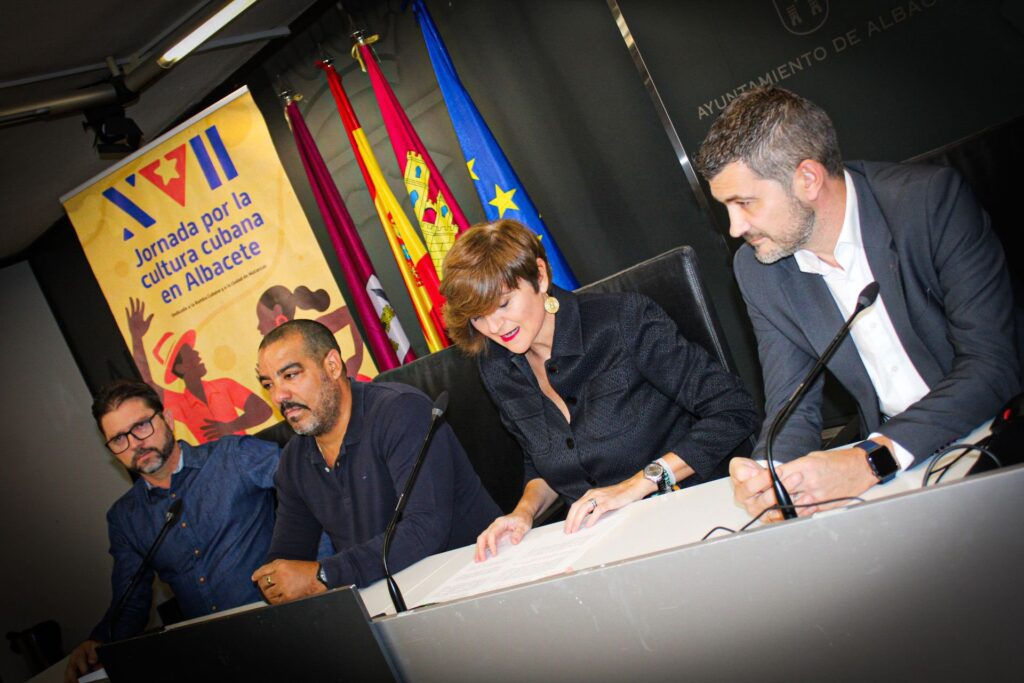 La concejala de Cultura, Elena Serrallé, acompañada por Orlando González, presidente de la Asociación Cultural Amigos de Cuba, ha presentado la XVII Jornada por la Cultura Cubana en Albacete, una cita organizada por nuestra entidad, y que se celebrará del 13 al 20 de octubre de 2025 en diferentes espacios, con un programa lleno de música, danza, cine y literatura que se centrará en la Rumba Cubana y en la ciudad de Matanzas.